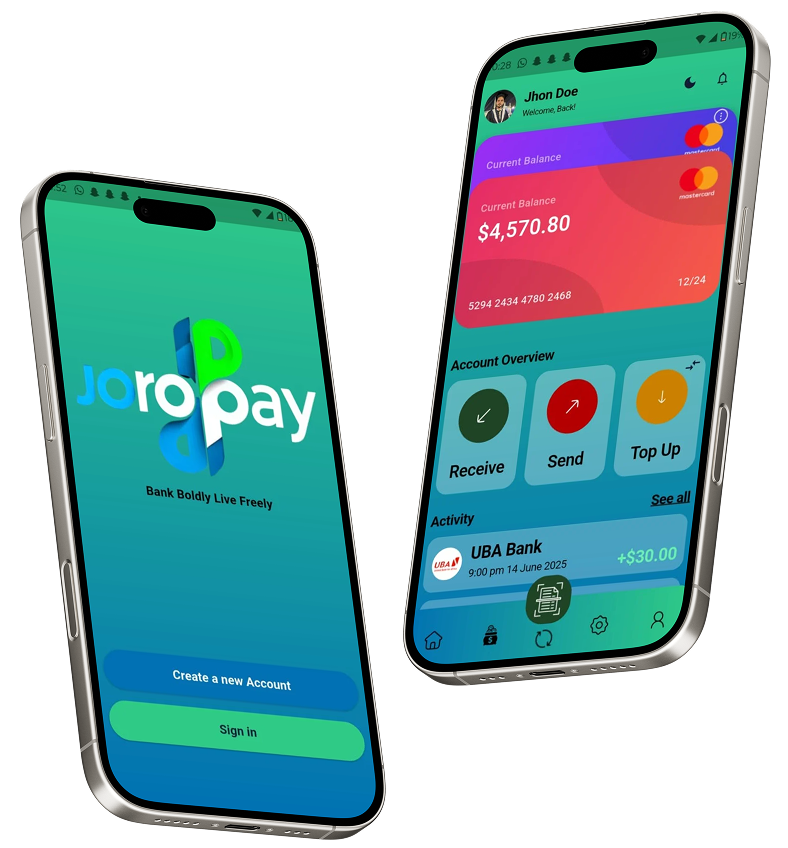 Experience seamless digital banking with JOROPAY, expanding across Africa. Send money, save, invest, and manage your finances with ease.
